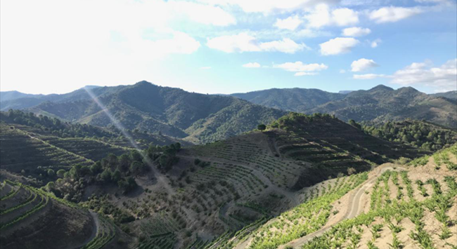普里奧拉托產(chǎn)區(qū)四面環(huán)山,大多數(shù)葡萄藤種植在海拔183-1,000米的梯田周圍。受地中海氣候的影響,這里夏季炎熱干燥而又漫長,冬季寒冷,降雨量非常少。土壤以含有少量云母的紅色板巖(Llicorella)為主,這種土壤有助于反射和保存熱量,為葡萄緩慢發(fā)展成熟創(chuàng)造了理想條件。歌海娜(Grenache)和佳麗釀(Carignan)是普里奧拉托主要種植的紅葡萄品種,二者經(jīng)常一起混釀。
