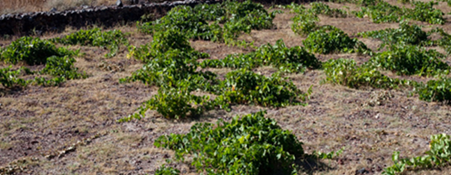 該島大多數(shù)葡萄園都位于該島的南部和西南部,地處由火山噴發(fā)而形成的火山巖和沙質(zhì)土壤中,其水分和有機(jī)物的含量幾乎為零,因此可有效避免葡萄根瘤蚜(Phylloxera)的入侵。為了保護(hù)園內(nèi)樹藤與果實(shí)免受當(dāng)?shù)氐膹?qiáng)風(fēng)吹襲,葡萄種植者們將藤枝修剪成低矮的簍子形狀,使葡萄在其內(nèi)側(cè)生長(zhǎng)。然而,海風(fēng)能夠促進(jìn)空氣的流通,防止葡萄樹滋生疾病與腐爛,從而維持葡萄的健康生長(zhǎng)。