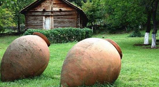 卡赫基傳統(tǒng)葡萄酒:卡赫基葡萄酒釀造歷史源遠(yuǎn)流長(zhǎng),堪稱格魯吉亞乃至全世界較古老的葡萄酒。卡赫基地區(qū)傳統(tǒng)釀酒工藝可謂獨(dú)占鰲頭;首先在壓榨槽內(nèi)將葡萄壓榨成汁并保持葡萄籽完整,在將葡萄汁導(dǎo)入純凈的Qvervri(粘土燒制的陶罐)中,將榨汁后的葡萄皮渣(在格魯吉亞語(yǔ)中稱為恰恰)和梗一并倒入陶罐中,一同放置十天,期間每天攪拌四次。攪拌較長(zhǎng)時(shí)間(通常至少14天)均勻的發(fā)酵具有重要意義。發(fā)酵完成后葡萄渣開始沉降,此時(shí)將陶罐封口但不密封以防止抑制蘋果酸-乳酸發(fā)酵。之后將陶罐密封靜置至次年三月份。