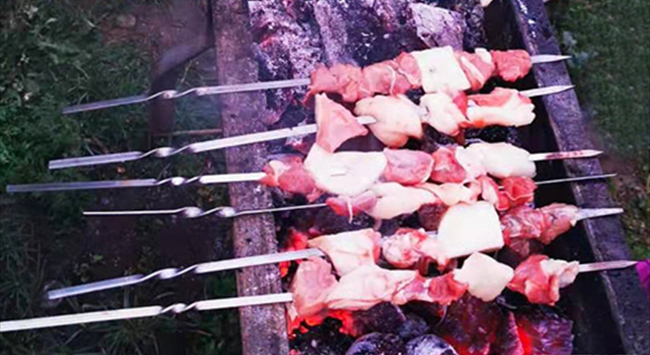 烤羊肉串是一種流行于中東、南亞、中亞、地中海、東亞等多個(gè)地區(qū)的羊肉菜式。在中國(guó),烤羊肉串的歷史可追溯至東漢時(shí)期,20世紀(jì)80年代以來(lái)隨著時(shí)代的發(fā)展,在大江南北傳揚(yáng)開(kāi)來(lái)。烤羊肉串看似簡(jiǎn)單,要保證羊肉既入味又鮮嫩卻并非易事,工序也十分考究——取新鮮羊肉或切片切塊,串穿在細(xì)鐵釬上,放置在烤爐上焙烤,再撒上些辣子面、胡椒粉和孜然粉等,不斷翻動(dòng),烤至雙面金黃,肉質(zhì)熟透。