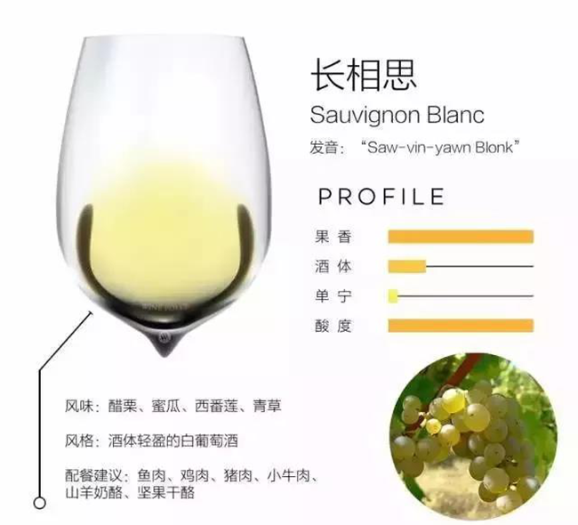 長相思是一款源自法國的、干型、酒體輕盈的白葡萄酒。這種葡萄酒非常清新,草本和青果風味明顯。長相思還是赤霞珠葡萄的母系品種之一。