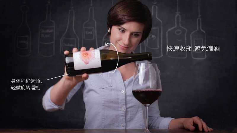 當(dāng)?shù)咕普吒械奖械木屏靠煲_(dá)到要求時,可將身體稍稍遠(yuǎn)離酒瓶,再輕微旋轉(zhuǎn)酒瓶底部并快速收瓶,這樣就能在沒有任何工具護(hù)佑的情況下也能避免滴酒。當(dāng)然,這是一個需要不斷練習(xí)的動作。