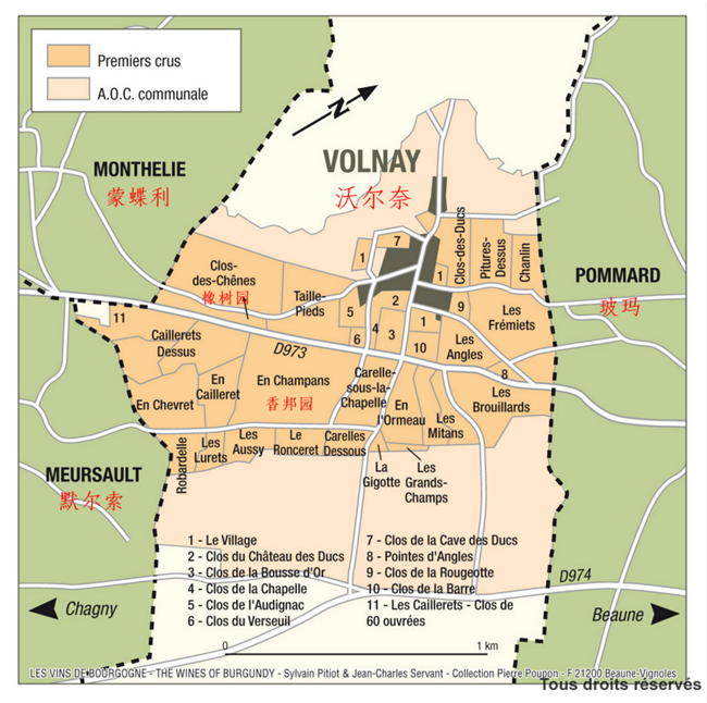 和很多伯恩丘的酒村一樣,沃爾奈沒(méi)有特級(jí)園(Grand Cru),但有幾塊一級(jí)園(Premier Cru)出產(chǎn)的葡萄酒品質(zhì)出色,有著“準(zhǔn)特級(jí)園”的稱(chēng)號(hào)。