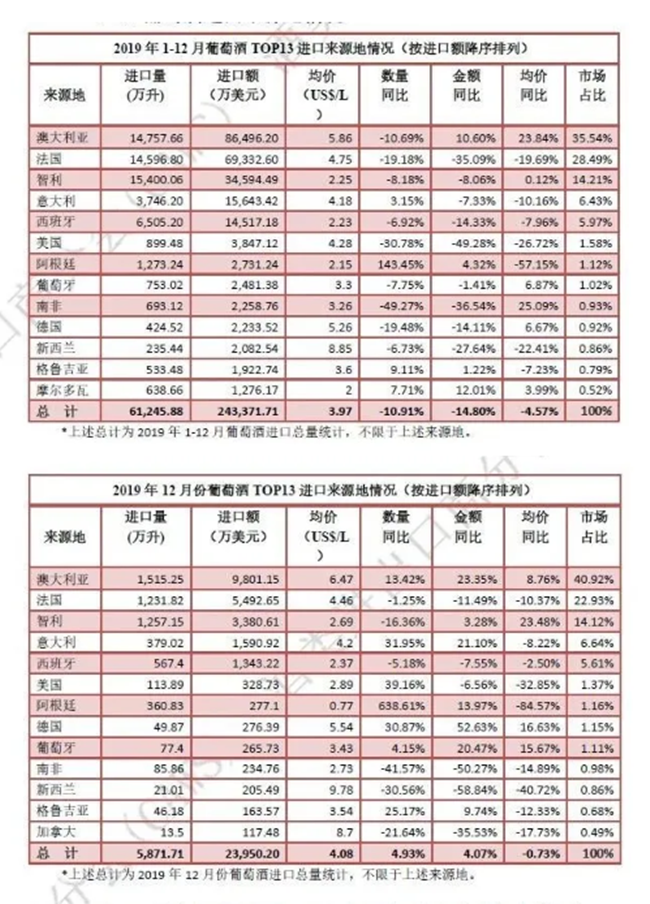 智利葡萄酒市場占有率比2018年的10.1%有明顯提升,但其酒協(xié)提高定位和提升品牌的努力成效不大,均價(jià)同比僅上漲了0.12%。