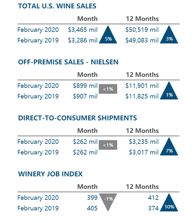 市場研究公司bw166報告稱,在過去的12個月中(截至2月底),美國葡萄酒的總銷售額增長了3%,達到505億美元,2月當月的總銷售額增長了35億美元。在截至2月22日的四個星期中,銷售額下降了1%,至8.65億美元。