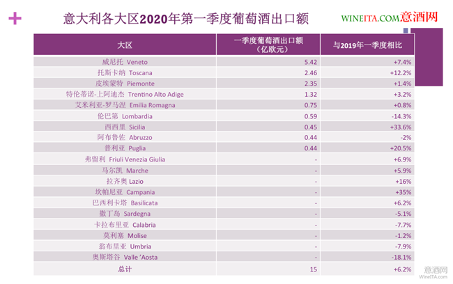 • 意大利葡萄酒2020年第一季度出口達15億歐 各大區出口實力一覽
