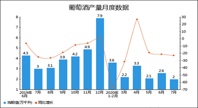 • 2020年1-7月全國葡萄酒產量統計分析