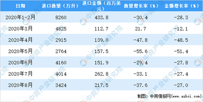• 2020年1-8月中國葡萄酒進口數據統計分析
