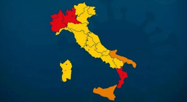 綜合意大利《24小時太陽報》、安莎社、Fanpage網(wǎng)站等報道,意衛(wèi)生部將全國分為紅色、橙色和黃色3種不同風險地區(qū)。其中,最高風險的“紅區(qū)”包括:倫巴第(Lombardia)、皮埃蒙特(Piemonte)、卡拉布里亞(Calabria)、瓦萊達奧斯塔(Valle d'Aosta);中等風險的“橙區(qū)”包括:普利亞(Puglia)、西西里(Sicilia);其余地區(qū)均被歸為風險較低的“黃區(qū)”。根據(jù)目前疫情趨勢,威尼托(Veneto)、利古里亞(Liguria)、坎帕尼亞(Campania)和托斯卡納(Toscana)的指標已非常接近“橙區(qū)”。