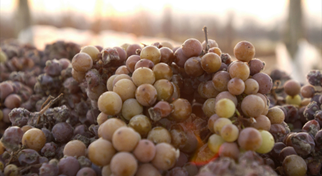 并不是每個年份都能生產冰酒,它精致的香味來自于風味高度濃縮的葡萄果實。當溫度低于零度,葡萄顆粒中的水會自然結冰,而在低溫的壓榨過程中冰不會融化,留在壓榨機內,這使得壓榨所得的葡萄果汁的含水量低、含糖量高,因此會像蜂蜜一樣濃郁甜美。由于酵母在高糖環境下的工作效率低,果汁中的糖分無法完全發酵成為酒精,因此冰酒的酒精度較低。