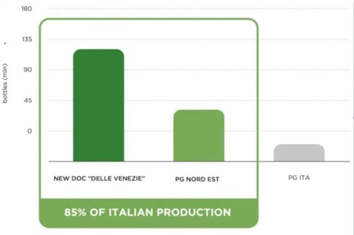 產(chǎn)區(qū)協(xié)會透露:2017年,該產(chǎn)區(qū)灰皮諾葡萄產(chǎn)量占葡萄總產(chǎn)量的73%。2018年1-6月,德拉威尼斯法定產(chǎn)區(qū)灰皮諾葡萄酒的產(chǎn)量已超過一百萬百升,裝瓶量超過1.3億瓶。這些DOC級別灰皮諾葡萄酒均已被海外市場預(yù)定。2018年12月之前,產(chǎn)區(qū)有望實現(xiàn)零庫存。