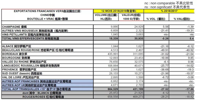 • 2018法國靜止葡萄酒對華出口量下跌9.8%