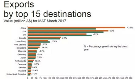 澳大利亞葡萄酒 管理局(Wine Australia)于2017年4月發(fā)布最新出口報告。報告顯示,在過去一年里,澳大利亞葡萄酒對中國大陸出口持續(xù)走強(qiáng),價量齊升!中國大陸依然保持澳大利亞葡萄酒出口額第一大市場的重要地位。 截止到2017年3月底的一年內(nèi),澳大利亞對中國大...