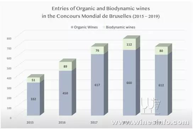 2019年,意大利(182款)、西班牙(151款)、法國(121款)、中國(53款)成為前四大有機葡萄酒參賽國(共24個國家選送了有機葡萄酒)。