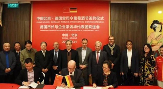 • 近日,德國市長與企業家訪華團一行在圓滿完成了北京考察和調研工作后,來到王府井全聚德紫云花廳,就“德國雷司令葡萄酒節”落戶北京相關事宜進行了座談,會后中德雙方代表還舉行了“德國雷司令葡萄酒節”簽約儀式。...