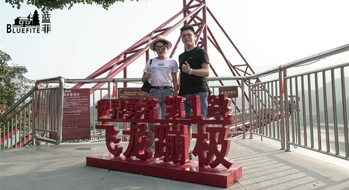 高空是勇者的舞臺,也是魄力和膽量的最佳體現。雖然站在跳臺俯視無敵全湖景有些心驚膽戰,但是還是有部分小伙伴心生向往,組成勇士團向飛龍蹦極發起挑戰,急速下墜、空間拉扯、飛龍蹦極,刺激到身體的每一個毛孔都在叫囂!在跳躍的瞬間,被禁錮的身體得到釋放,仿佛觸手可摸的朵朵白云,體驗失重瞬間即永恒的感受,完全是意志力、堅強和勇敢的大比拼!