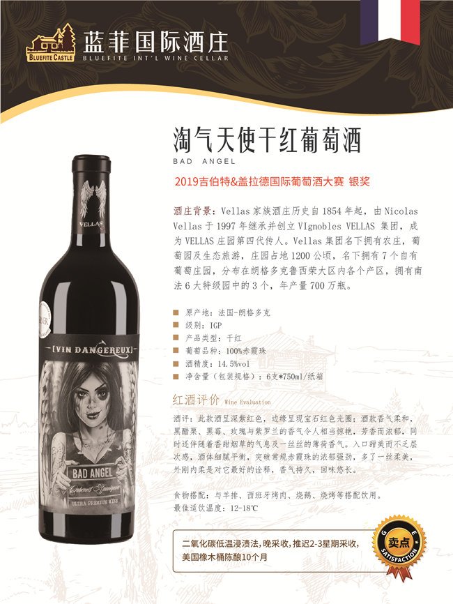 《吉伯特&蓋拉德葡萄酒指南(Gilbert&Gaillard)》一直是法國最權(quán)威的葡萄酒指南之一,該雜志由菲利浦·蓋拉德(Phillippe Gaillard)和弗朗索瓦·吉伯特(Fransois Gilbert)兩人創(chuàng)辦于1991年,如今已發(fā)展成為全球性的葡萄酒多媒體產(chǎn)業(yè),旗下記者遍布法國、意大利、西班牙、中國和美國?!都?amp;蓋拉德葡萄酒指南》所有品評過的葡萄酒都是在盲品的條件下進(jìn)行,采用的是國際流行的100分制體系;品酒記錄及得分會公布在雜志的官網(wǎng)Gilbertgaillard.com上。由此可見Vellas酒莊出品的嘉仕頓干紅葡萄酒、快樂天使干紅葡萄酒以及淘氣天使干紅葡萄酒的風(fēng)味與實(shí)力!