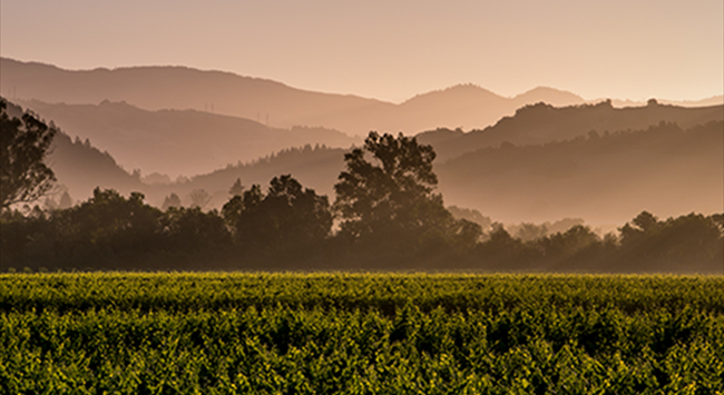 索諾瑪谷產(chǎn)區(qū)位于索諾瑪縣南部,東西兩側(cè)分別為瑪雅卡瑪斯山(Mayacamas Mountains)和索諾瑪山(Sonoma Mountains),阻擋了來自太平洋的涼爽氣流,造就了產(chǎn)區(qū)內(nèi)相對暖和的氣候。該產(chǎn)區(qū)成立于1981年,有著豐富的釀酒歷史,產(chǎn)區(qū)內(nèi)現(xiàn)有酒莊100余座,葡萄園種植總面積達(dá)2,252公頃,經(jīng)典釀酒葡萄為赤霞珠與霞多麗。