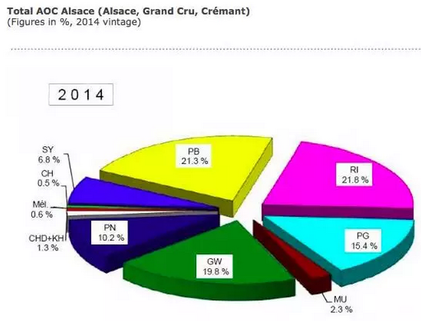 官方給出的統計數據,2014年在阿爾薩斯三大原產地命名產區 (AOC) 中,白皮諾的種植面積占到所有葡萄品種的21.3%,與種植面積最廣的雷司令 (21.8%) 不分伯仲。