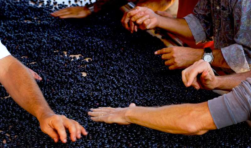 葡萄果實運送至釀酒廠后,部分酒莊,尤其是釀造高品質葡萄酒的酒莊會選擇將果實放在分揀臺上進行挑選,以剔除不健康、未成熟或是腐爛的葡萄。