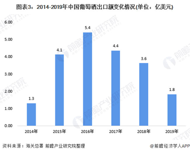 海關數據顯示,2019年,受行業景氣程度影響,我國葡萄酒進出口額均有所下降,進口額實現35.4億美元,出口額實現1.8億美元,進口額跌幅高于出口額。整體進出口總額降為37.2億美元,實現貿易逆差33.6億美元。