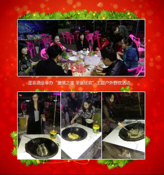 12月25日,適逢圣誕節(jié)來臨之際,公司組織藍(lán)菲酒業(yè)全體員工開展“激情之夜 圣誕狂歡”為主題的農(nóng)家樂戶外野炊活動(dòng),讓全體員工在公司共度一個(gè)難忘的圣誕節(jié)。