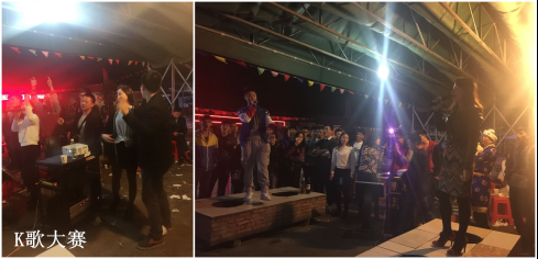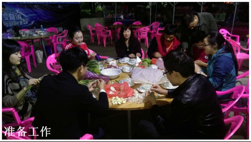 25號(hào)當(dāng)天,負(fù)責(zé)采購的同事根據(jù)大家寫好的菜單,提前采購好所需要的雞、鴨、魚、肉、蔬菜等各色原料,以及油鹽醬醋等各種調(diào)味品,開始做好活動(dòng)前的各項(xiàng)準(zhǔn)備工作。當(dāng)天下午5點(diǎn),大家在公司領(lǐng)導(dǎo)莊總、劉總、曾總的帶領(lǐng)下,陸續(xù)到達(dá)活動(dòng)現(xiàn)場——位于南城水濂山腳下順風(fēng)山莊內(nèi)的蒙之味烤全羊原生態(tài)KTV燒烤廣場。