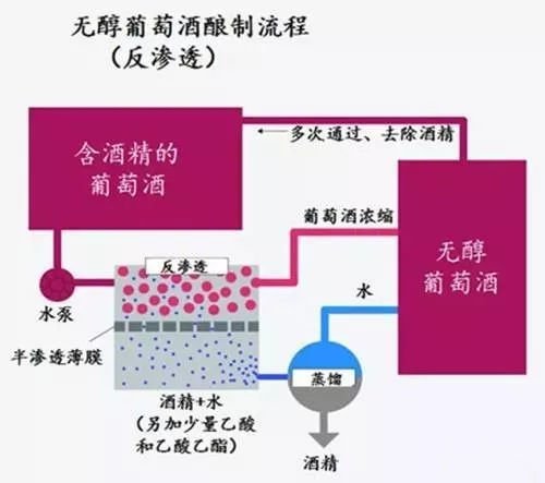 它同樣是按照葡萄酒酒的生產(chǎn)工藝釀造出來(lái)的、只不過(guò)是在裝瓶之前,利用只允許溶劑透過(guò)的半透膜,先將葡萄酒中的絕大部分酒精與其他物質(zhì)分開,再通過(guò)蒸餾的方式將酒精分離。